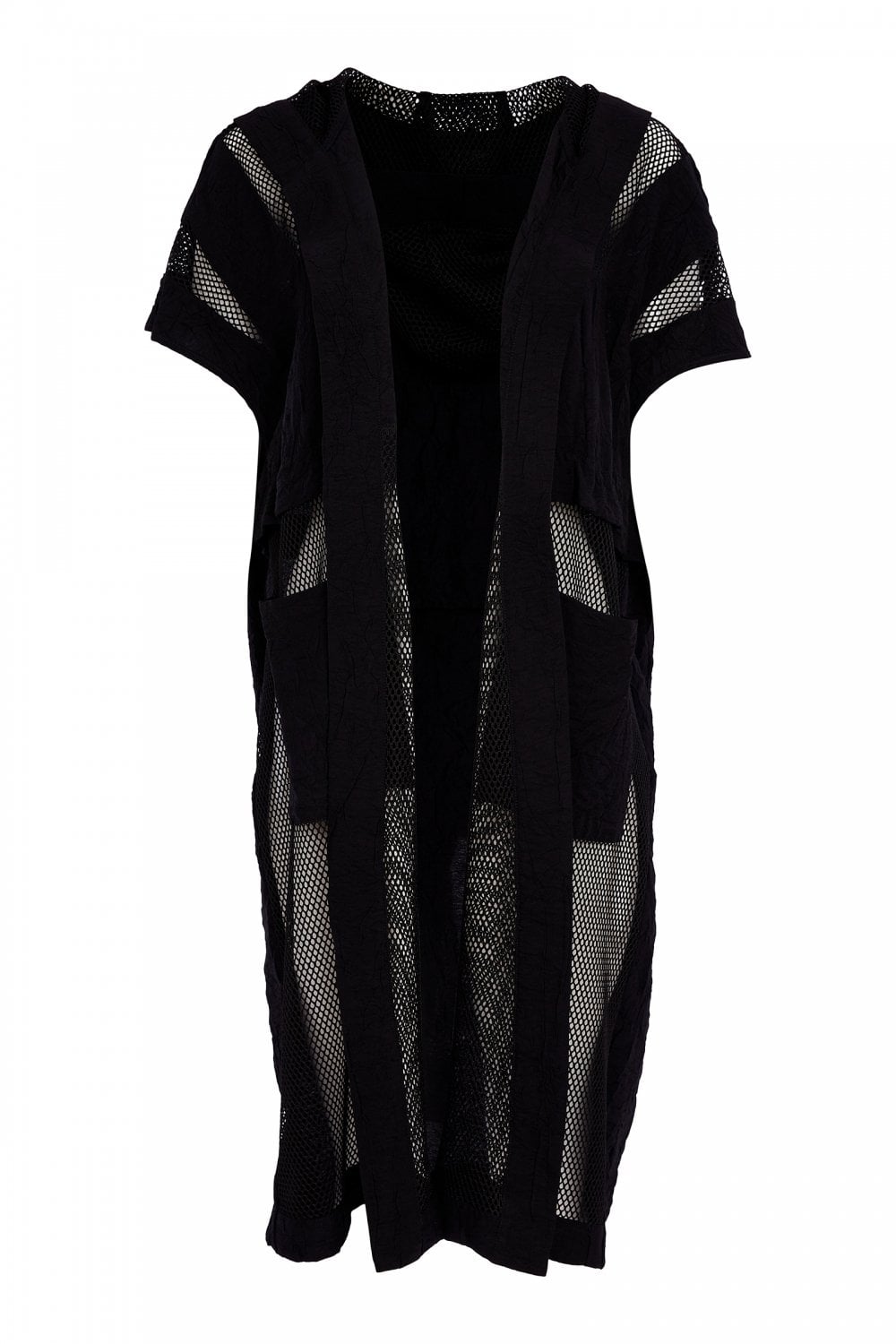 NAYA Black Long Line Hooded Mesh Jacket